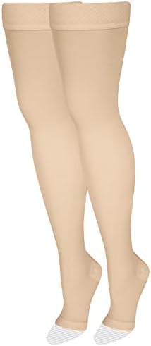 View full detailsNuVein Medical Compression Stockings, 20-30 mmHg Support, Women & Men Thigh Length Hose, Open Toe, Light Beige, Small