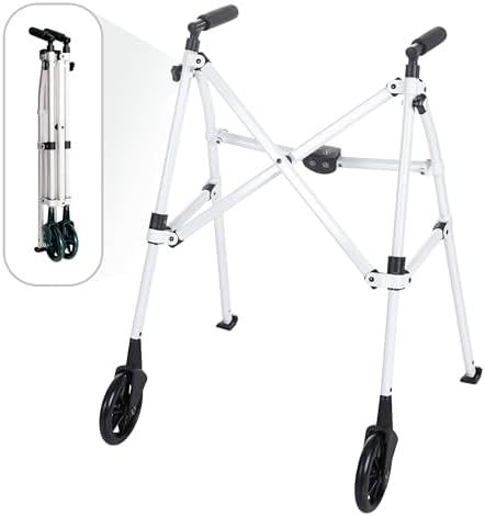 Stander Space Saver Walker, Lightweight Folding Rolling Mobility Aid for Seniors & Adults, Compact 2-Wheel Disability Device with 6-inch Wheels & Ski Glides for Walking Support, Vivid White