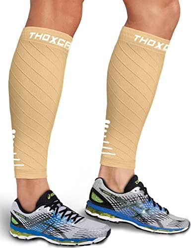 View full detailsCalf Compression Sleeve for Men Women (2 Pairs), Leg Support Footless Compression Socks for Running - Shin Splint Varicose Veins Swelling & Pain Relief, Beige/White, Large