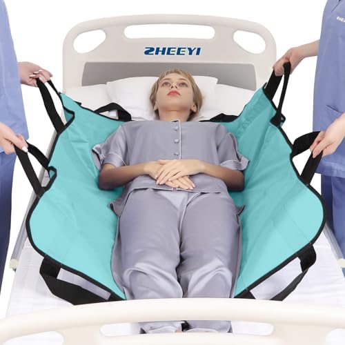 View full detailsPositioning Bed Pad with Reinforced Handles 43" x 36" Patient Transfer Sheet Aid Assistant for Body Lifting, Turning, Repositioning, for Elderly, Incontinence, Caregiver, Aqua Blue