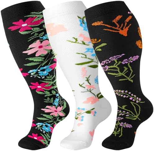 View full detailsbropite 3 Pairs Plus Size Compression Socks Extra Wide Calf Women&Men 20-30mmHg Support Dancing Cycling Running Climbing