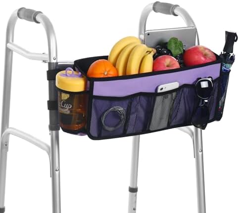 View full detailsCTWWFS Upgrade Walker Basket with Cup Holder, Foldable Walker Storage Bag for seniors with Big Capacity & Never Tipping Over, Best Gift for Family (Purple)