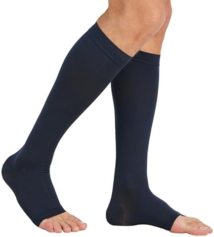 View full detailsMGANG® 20-30 mmHg Compression Stocking for Men and Women, Medical Compression Socks, Knee High Length, Open Toe, for DVT, Varicose Veins, Relief Shin Splints, Edema, Navy Blue Medium
