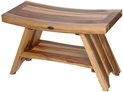 EcoDecors 30 Inch Serenity Teak Shower Bench – Waterproof Bathroom Seat with Large Storage Shelf For Adults & Seniors | Spa-Style Teak Wood Stool with Non-Slip Feet, Elegant Finish, 300 Pound Capacity