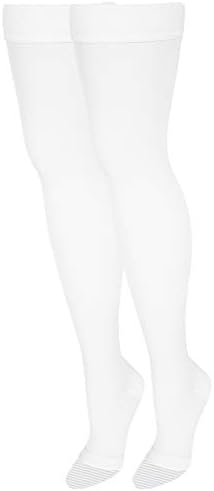 View full detailsNuVein Medical Compression Stockings, 20-30 mmHg Support, Women & Men Thigh Length Hose, Open Toe, White, 2X-Large