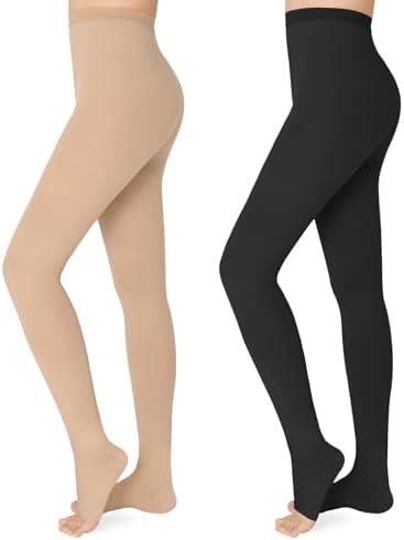 View full details20 - 30mmHg Compression Pantyhose,1 Pair or 2 Pairs Comfortable Compression Leggings,Open Toe Design,Medical Waist High Compression Stockings for Edema, Varicose Veins, Swelling, Pregnant,Nurses, Athletes(Open Toe)