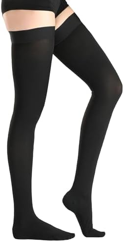 View full detailsNuvein Medical Compression Stockings, 20-30 mmHg Support, Women & Men Thigh Length Hose, Open Toe, Black, Large