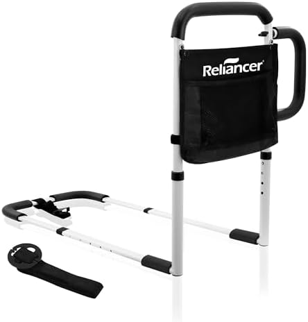 RELIANCER Bed Safety Rail for Elderly Adult w/Side Support Bar&Storage Bag,Dual Handle Assist Grab Bar for Seniors,Adjustable Bedside Support Railing,Bed Side Assist Guard Rail,Bedside Hand Guard Bar
