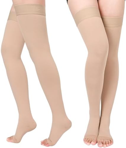 View full detailsCompression Stockings for Women & Men, 2 Pairs 15-20mmHg Thigh High Compression Socks for Varicose Veins, Swelling, Pregnant