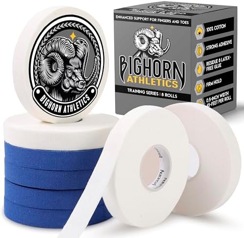 View full detailsBighorn Athletics Jiu Jitsu Finger Tape, 0.5-Inch x 45-feet, 8-Rolls | Residue-Free, Zinc Oxide Adhesive | Athletic Sports Tape for BJJ, Wrestling, Climbing, Volleyball, Hands & Toes | Blue & White