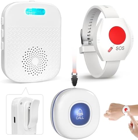 PORTABLE CAREGIVER PAGER: Call bell system with 1 wrist button, 1 waterproof call button and 1 portable vibrating receiver. The call buttons can...