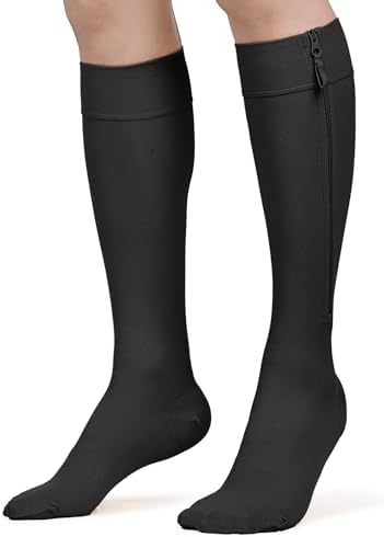 View full detailsKEKING® Zipper Compression Socks for Men Women, Open Toe, 20-30mmHg Firm Support Knee High Zipper Compression Stockings for Wide Calf - Varicose Veins, DVT, Shin Splints, Edema, Nursing, Beige 3XL