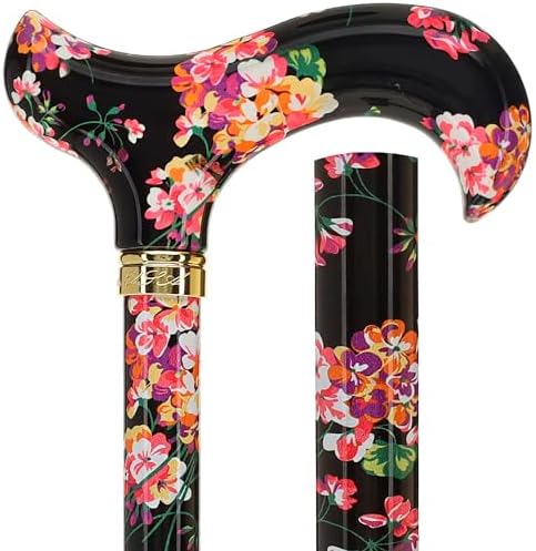 Sophisticated Design: Elevate your style with our Midnight Floral Designer Cane, featuring a sleek finish and golden engraved collar. The bright...