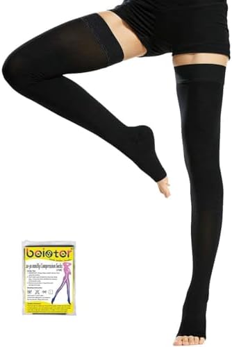 View full detailsBeister 1 Pair Medical Open Toe Thigh High Compression Stockings with Silicone Band for Women & Men, Firm 20-30 mmHg Graduated Support for Varicose Veins, Edema, Flight.