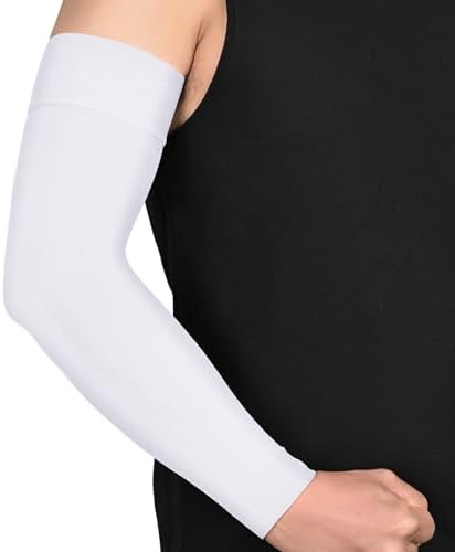 MGANG Lymphedema Compression Arm Sleeve for Women Men, Opaque, 15-20 mmHg Compression Full Arm Support with Silicone Band, Relieve Swelling, Edema, Post Surgery Recovery, Single White XL