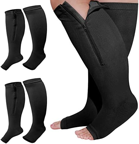 View full detailsHillban 2 Pair Plus Size Calf Zipper Compression Socks 15 to 25 Mmhg Open Toe Compression Stockings for Overweight Women Men