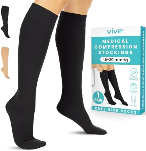 View full detailsVive Knee High Compression Socks for Women & Men – 15-20mmHg Medical Support Stockings for Varicose Veins, Swelling, Soreness & Airplane Travel – Breathable TED Hose for Legs & Feet (Beige,Black)