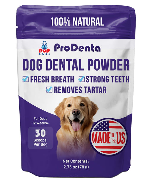 View full detailsPup Labs ProDenta, All-Natural Dog Dental Powder and Breath Freshener, Easy-to-Use Dog Teeth Cleaning Powder Against Leaky Gums, Teeth and Tartar Remover Made in USA, 30 Scoops