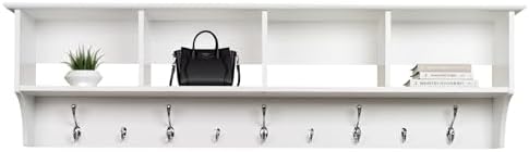 View full detailsPrepac 60" Contemporary Wall Mounted Coat Rack, Coat Hooks Wall Mount with 4 Shelves, Ideal for Hallway or Entryway Storage Solution, 11.5"D x 60"W x 16.5"H, White