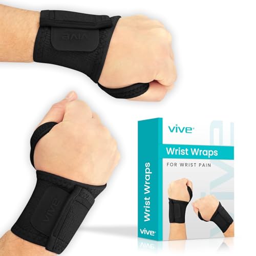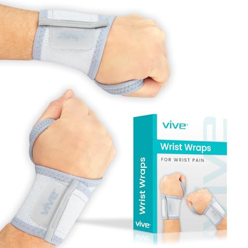 View full detailsVive Wrist Wrap Braces (2 Pack) - Tendonitis Support for Carpal Tunnel Arthritis - Sprained Pain Protection Sleeve - Weightlifting & Calisthenics Compression Stabilizer for Women, Men - Adjustable
