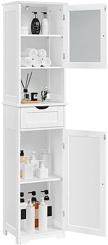 View full detailsYaheetech Tall Bathroom Storage Cabinet 67″, Wooden Floor Cabinet with Glass Door, Freestanding StorageOrganizer with Adjustable Shelves, 1 Drawer and Open Storage for Bathroom, Kitchen, Living Room