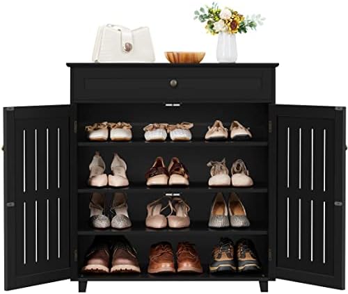 View full detailsYaheetech Shoe Cabinet, 4-Tier Shoe Storage Cabinet with Drawer & Adjustable Shelves, Wooden Shoe Rack Organizer with Louvered Doors for Entryway, Hallway, Bedroom, Closet, Living Room, Black