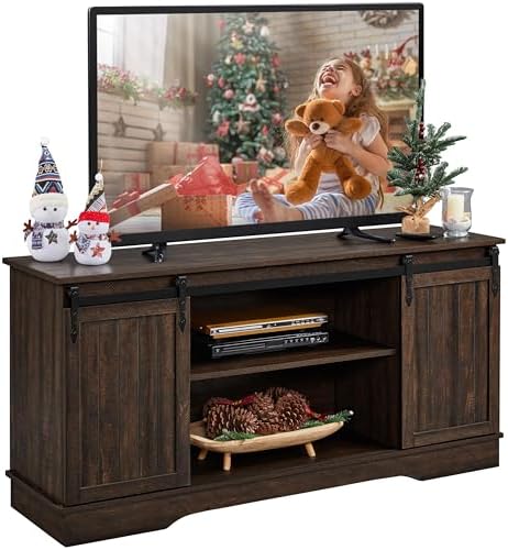 View full detailsYaheetech TV Stand for TVs Up to 65 inch, Farmhouse Media Entertainment Center, 58'' TV Console Table with Adjustable Shelves & Sliding Barn Doors for Living Room, Dark Walnut