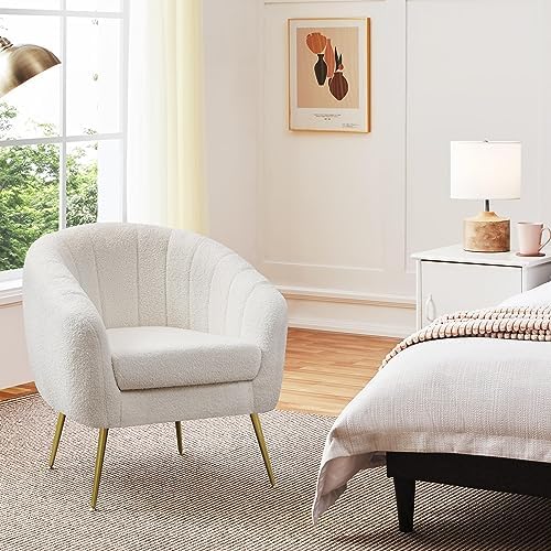 View full detailsYaheetech Sherpa Fabric Accent Chair, Modern Cozy Vanity Chair with Gold Metal Legs, Boucle Fabric Armchair with Removable Seat Cushion for Living Room Bedroom Office Guest Room, Ivory