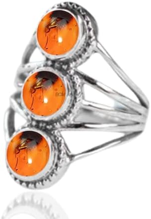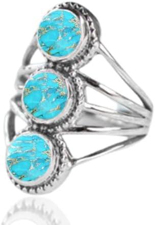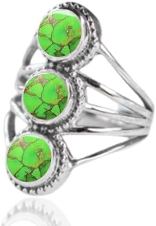 Solid 925 Sterling Silver Ring For Womens, 3 Stone Ring, Unique Handcrafted Ring for Her, Wedding, Anniversary, Engagement, Birthday, Christmas Gift (US Ring size)
