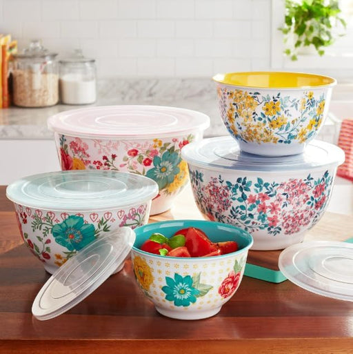View full detailsThe Pioneer Woman Melamine Mixing Bowls Set with Lids 10-Pieces Bundle with Spoon Rest & Stainless Steel Silicone Kitchen Tongs Red (Total 12 Pieces)