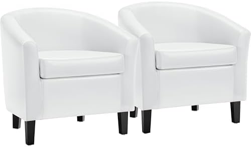 View full detailsYaheetech White Accent Chairs Set of 2, Faux Leather Barrel Chairs, Modern Living Room Chairs, Comfy Club Chairs with Sturdy Wood Legs for Bedroom/Reading/Room/Waiting Room, White