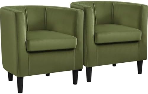 View full detailsYaheetech Velvet Accent Chair, Modern and Comfortable Armchairs, Upholstered Barrel Sofa Chair for Living Room Bedroom Waiting Room, Olive Green, 2pcs