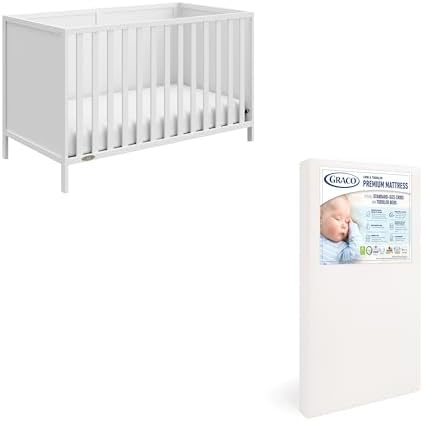 View full detailsGraco Theo Crib and Mattress Nursery Essentials Pack (White) – GREENGUARD Gold Certified Baby Crib & Crib Mattress, Cribs with Mattress Included, Convertible Crib, Baby Mattresses for Crib
