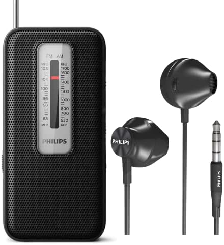 View full detailsPhilips AM FM Battery Operated Portable Pocket Radio, AM FM Compact Transistor Radios Player with Bonus Philips in-Ear Headphones (Black)
