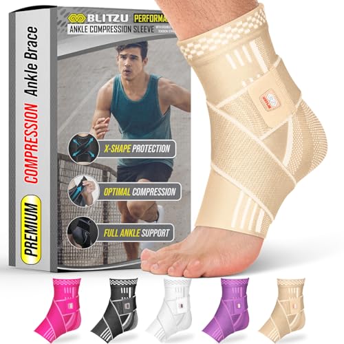 View full detailsBLITZU Ankle Brace for Women, Men, Plantar Fasciitis Relief, Achilles Tendonitis Brace for Sprained Foot, Ankle Compression Sleeve with Strap Nude M