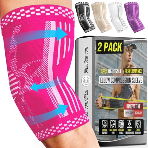 View full detailsBLITZU 2 Pack Elbow Compression Sleeve, Tennis Elbow Brace Support for Golfer's, Arthritis, Bursitis & Tendonitis Treatment & Pain. Great for Gym Workout, Weightlifting. Pink X-Large.