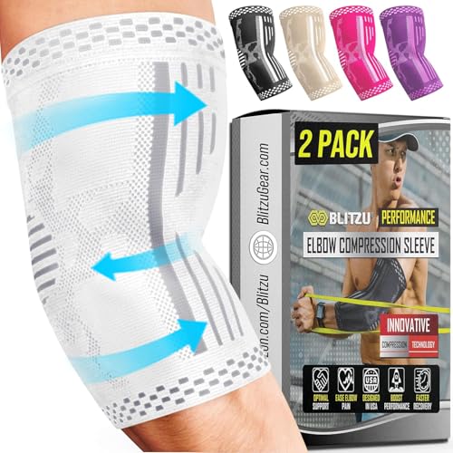 View full detailsBLITZU 2 Pack Elbow Compression Sleeve, Tennis Elbow Brace Support for Golfer's, Arthritis, Bursitis & Tendonitis Treatment & Pain. Great for Gym Workout, Weightlifting. White X-Large.