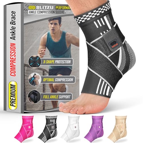 View full detailsBLITZU Ankle Brace for Women, Men, Plantar Fasciitis Relief, Achilles Tendonitis Brace for Sprained Foot, Ankle Compression Sleeve with Strap Black XL