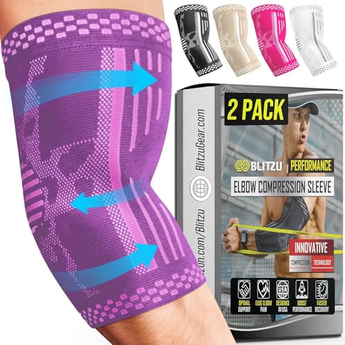 View full detailsBLITZU 2 Pack Elbow Compression Sleeve, Tennis Elbow Brace Support for Golfer's, Arthritis, Bursitis & Tendonitis Treatment & Pain. Great for Gym Workout, Weightlifting. Purple Small.