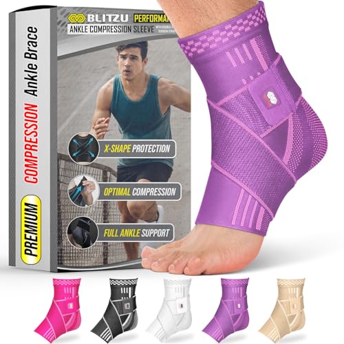 View full detailsBLITZU Ankle Brace for Women, Men, Plantar Fasciitis Relief, Achilles Tendonitis Brace for Sprained Foot, Ankle Compression Sleeve with Strap Purple M
