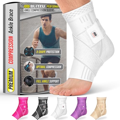 View full detailsBLITZU Ankle Brace for Women, Men, Plantar Fasciitis Relief, Achilles Tendonitis Brace for Sprained Foot, Ankle Compression Sleeve with Strap White S