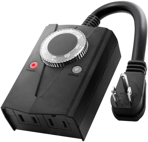View full detailsBrightown Outdoor Light Sensor Timer Waterproof, Mechanical Plug in Timer Switch, Outdoor Light Timer for Electrical Outlets, 2 Grounded Electrical Outlets for Christmas String Lights, Lighting Decor