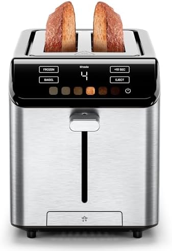 View full detailsChefman Smart Touch 2 Slice Digital Toaster, 6 Shade Settings, Touchscreen Controls, Extra-Wide Slots for Thick Breads & Bagels, +10 Seconds, Defrost, Removable Crumb Tray – Stainless Steel