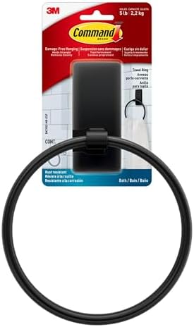 View full detailsCommand Hand Towel Holder Matte Black with Water Resistant Command Strips, Rust Resistant Bathroom Organizer, Holds up to 5 lbs, 1 Ring