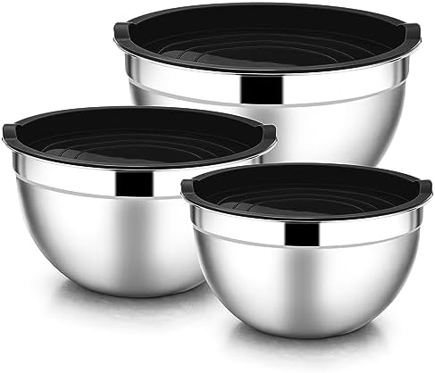 View full detailsE-far Mixing Bowls with Lids, 6-Piece Stainless Steel Salad Bowls Metal Nesting Bowls for Baking Cooking and Prepping, Airtight Lids & Stackable Design, Size 4.5, 3, 1.5 QT (Black)