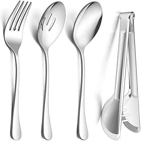 View full detailsE-far Large Serving Utensils Set of 8, Stainless Steel 9.8 Inch Serving Spoons Slotted Spoon, 9.9 Inch Serving Fork, 9.4 Inch Serving Tong for Buffet Catering Banquet, Mirror Finish & Dishwasher Safe