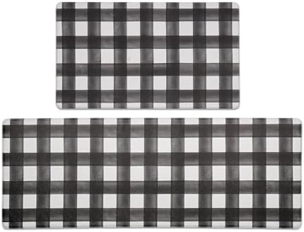 View full detailsFRESHMINT Modern Farmhouse Plaid 2 Piece Set Kitchen Mats for Floor Anti Fatigue Waterproof & Non-Skid Kitchen Rugs Cushioned Kitchen Mat for Standing Washable Comfort Desk Kitchen Runners