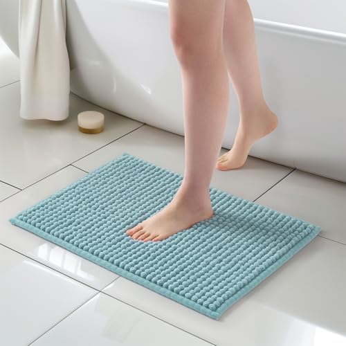 View full detailsFRESHMINT Thick Chunky Chenille Bathroom Rugs 17"x24", Non Slip Bath Mat for Bathroom Floor, Small Soft Bathroom Decor Accessories, Cute Shower Mat Water Absorbent, Washable, Aqua Blue