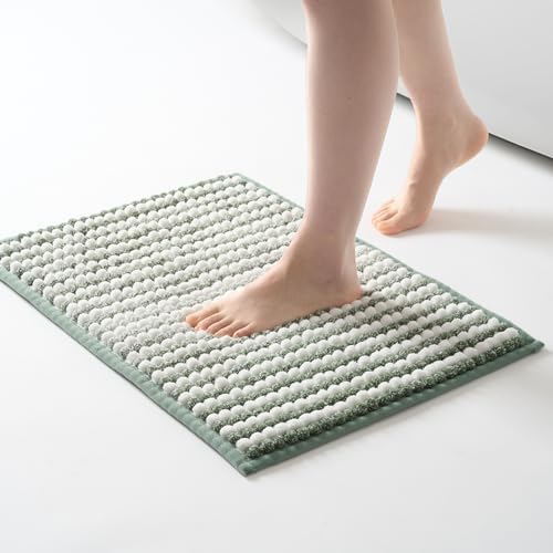 View full detailsFRESHMINT Chunky Ombre Chenille Bathroom Rug 17"x24", Small Water Absorbent Soft Bath Rugs for Bathroom Floor, Thick Non Slip Bath Mat Washable Quick Dry Shower Mats, Sage Green and White