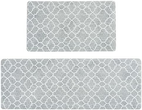 View full detailsFRESHMINT Kitchen Mat Set of 2, Anti-Fatigue Cushioned Kitchen Mats for Floor, Waterproof Non Slip Comfort Standing Mat, Boho Kitchen Rug for Kitchen Decor, Sink, Office, 17"x30"+17"x47", Stone Gray